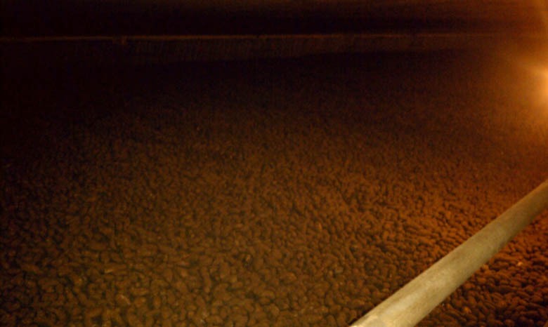 Last fall, I was also able to tour some major manufacturing facilities. I went on a trip with John Frick, Eat’n Park’s Executive Chef of Menu Development, to Wisconsin to two McCain Foods plants. First, we went to Plover, WI to a potato facility. Now that is a large plant. They started off the tour by taking us to one of their 13 potato storage buildings. These buildings are the size of a football field, including the end zones and have potatoes stacked 18 feet high! That means that each one holds around 30,000,000 lbs. of potatoes! If the plant was running at full capacity, they could empty out one of those buildings in about 13 days. Next we moved inside the plant and walked us through from the cleaning of the potatoes to the sorting, peeling, cutting, cooking, freezing, and packaging portions, all in order of how it is set up in the plant. It is really a site to behold. I have included the best picture that I have, which is the top of 30 million lbs. of potatoes, but I was not allowed to take any pictures in the plant, because they don’t want any of their trade secrets getting out.