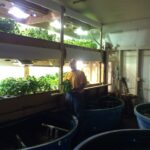One of the primary reasons I visit potential new suppliers is to ensure that the food we source comes from locations that have incorporated food safety standards into their operations. When I mentioned this to owner and operator Vaughn Raup, he was thrilled to give me a tour of his operation. He first showed me the fish he raises and explained that the water in which they live is the only source of nutrients for the basil he is growing. In an aquaponics system the fish and the plants are in two separate containers but they are a part of the same ecosystem. The fish produce waste that is rich in nutrients and nitrogen. That waste water is channeled to the basil plants that use the nutrients to grow and filter the water of nitrogen that, in high amounts, can be harmful to fish. That filtered water is then directed back to the fish tank and the cycle starts all over again.