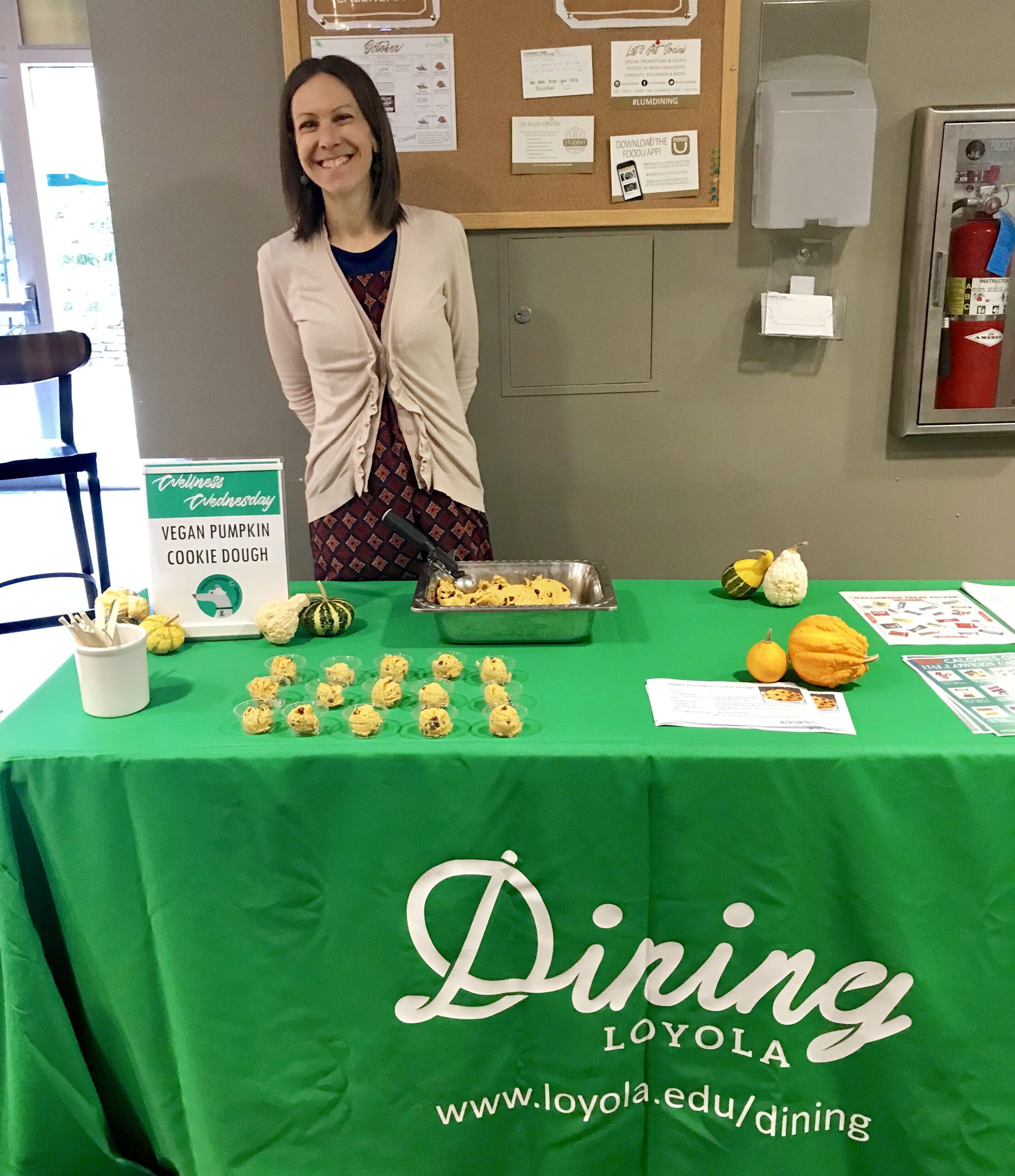 Earlier this month, Parkhurst Dietitian Alicia Koloski teamed up with onsite Marketing Manager Lindsay Winn at Loyola University Maryland to offer healthful, seasonal samples and accompanying recipe cards to students. This was all part of Loyola Dining’s #WellnessWednesday, an initiative spearheaded by Winn, and part of LUM’s broader Healthy Hound program.