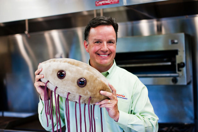 Our food safety training involves the use of these “germ” plushes (for example E. coli) where our safety team explains the different germs and how to keep our kitchens safe from them.