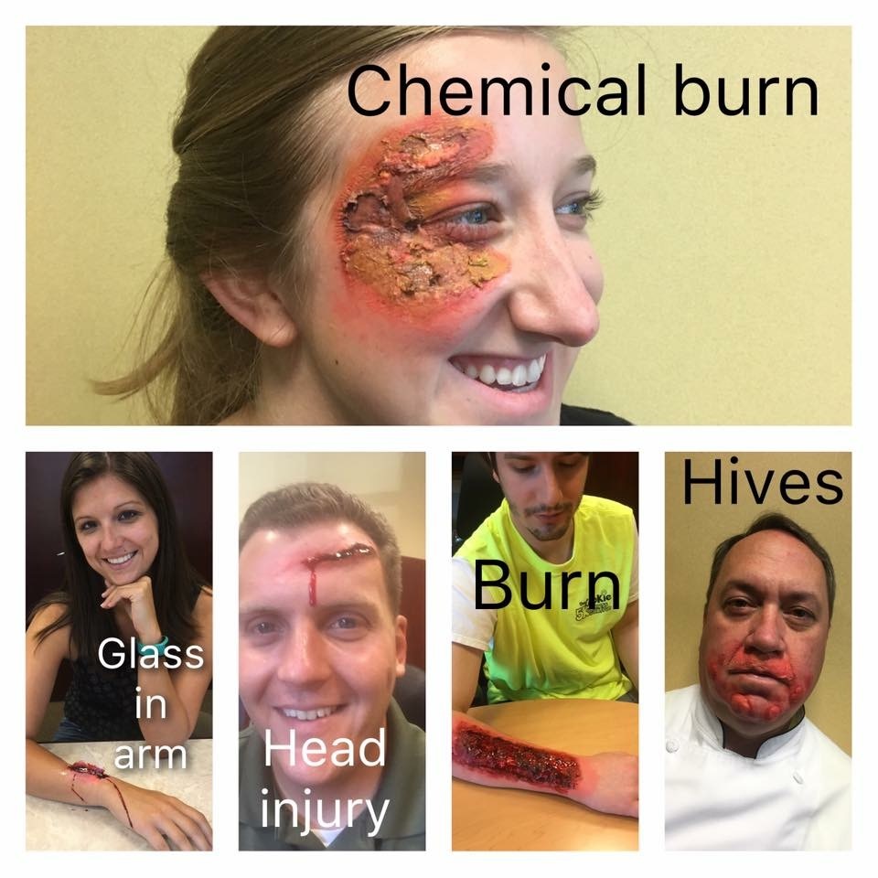 Resident makeup artist and human resources professional Tiffany Bolner helped out with some amazing faux injuries for our first aid and CPR class.