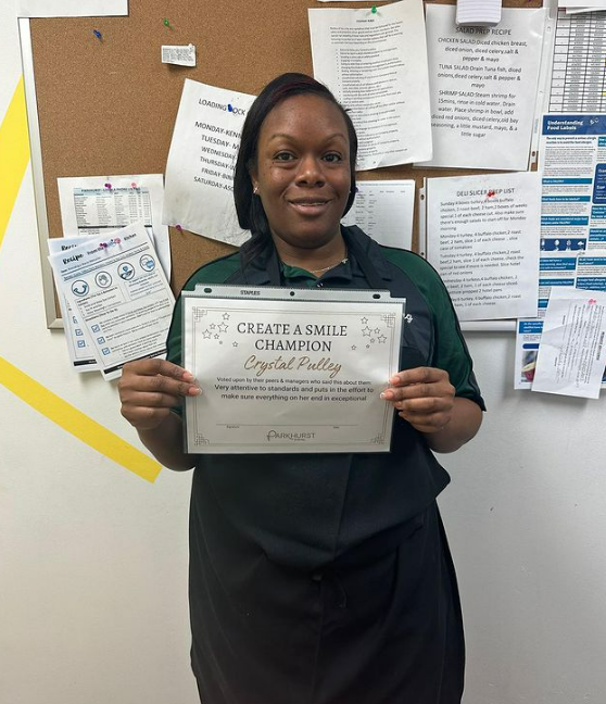 At Loyola University Maryland, we highlighted our Create a Smile Champions for this semester, including Crystal, who is a prep cook in Boulder and has been with Loyola Dining for 10 years! Her favorite food is lasagna, and her favorite memory of working here is Halloween. Thanks for being a champion, Crystal! -
