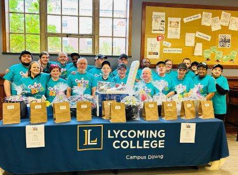 The Lycoming Dining team representing our Caring for Kids cause before drawing the winning names from their basket raffle!